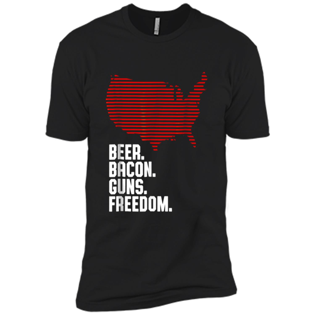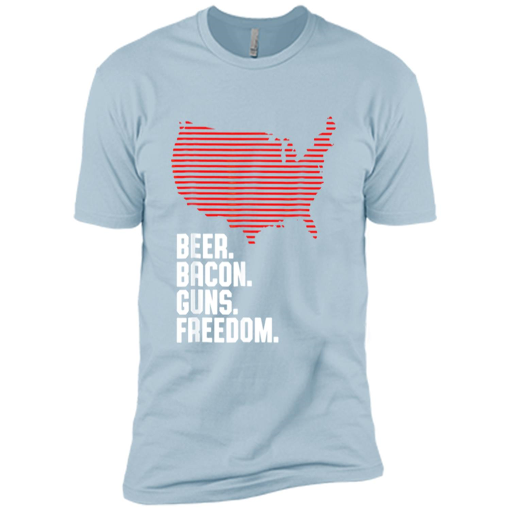 Machine washable (wash inside out in cold water, hang dry). 4th of July Shirt Beer Bacon Guns Freedom - Premium Short Sleeve T-Shirt