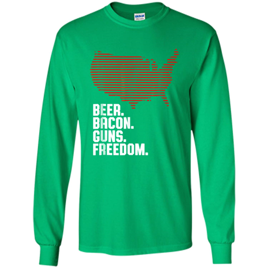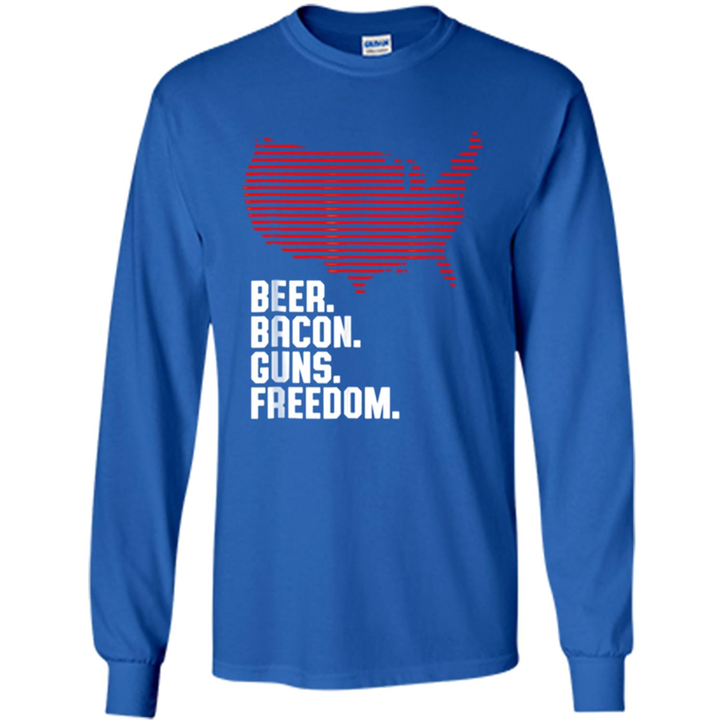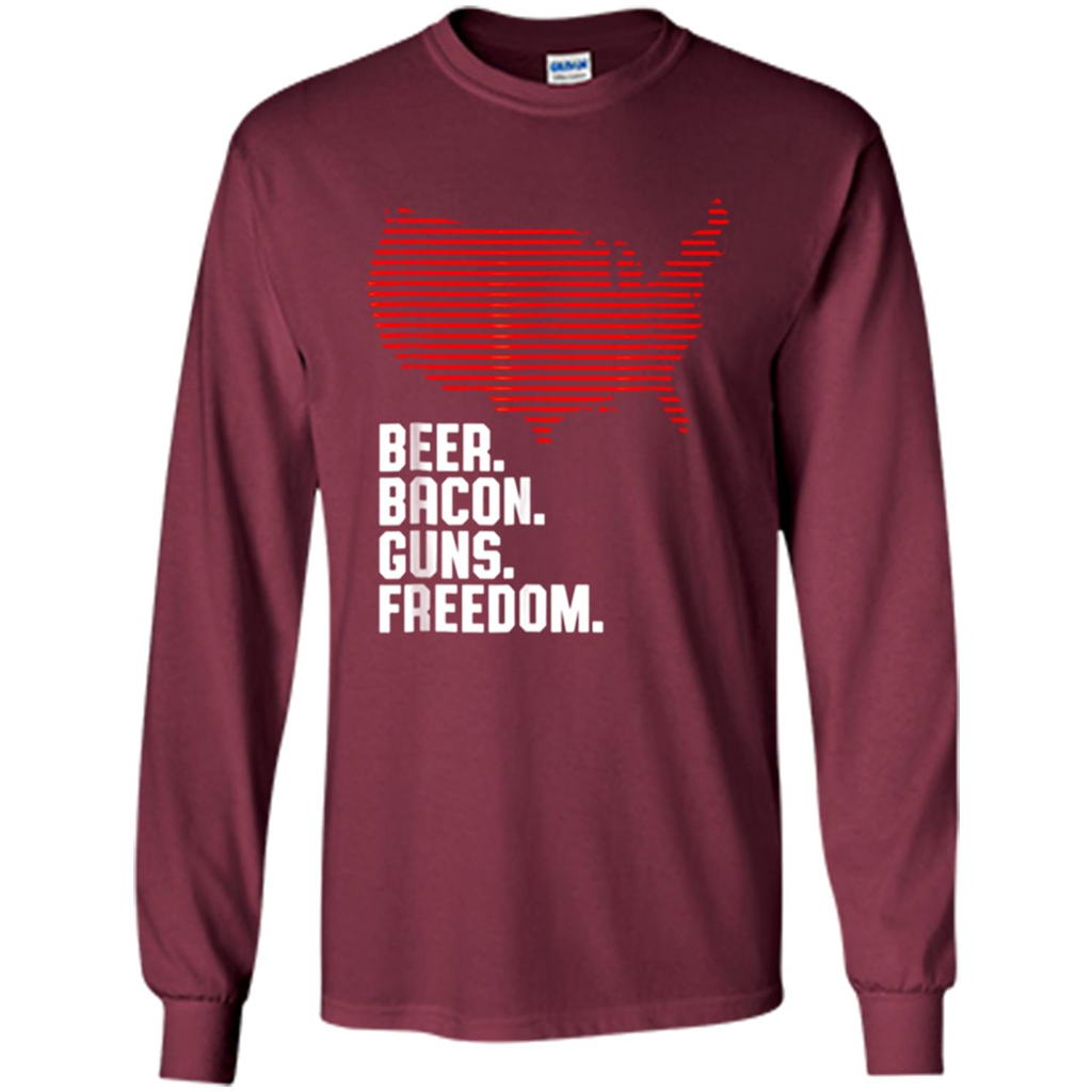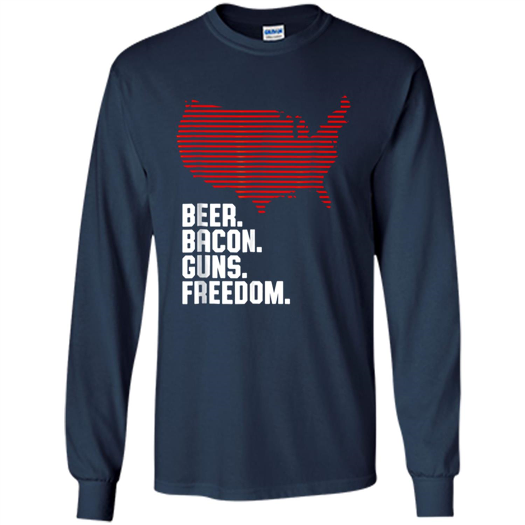 Machine washable (wash inside out in cold water, hang dry). 4th of July Shirt Beer Bacon Guns Freedom - Long Sleeve T-Shirt