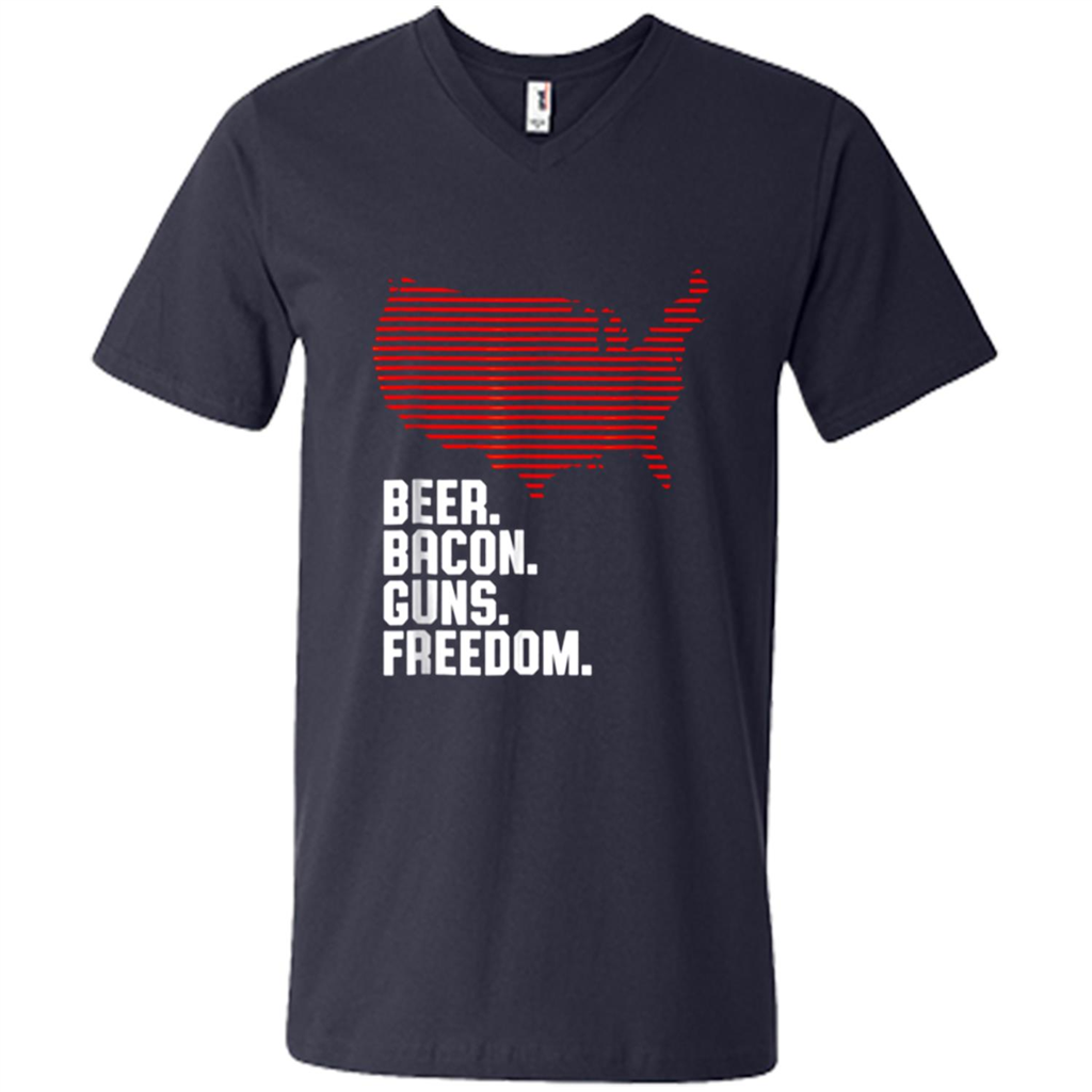 Machine washable (wash inside out in cold water, hang dry). 4th of July Shirt Beer Bacon Guns Freedom - Men's V-Neck