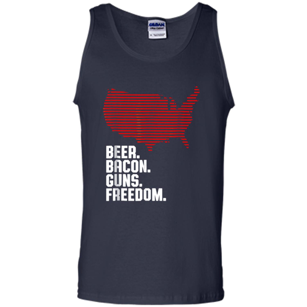 Machine washable (wash inside out in cold water, hang dry). 4th of July Shirt Beer Bacon Guns Freedom - Tank Top